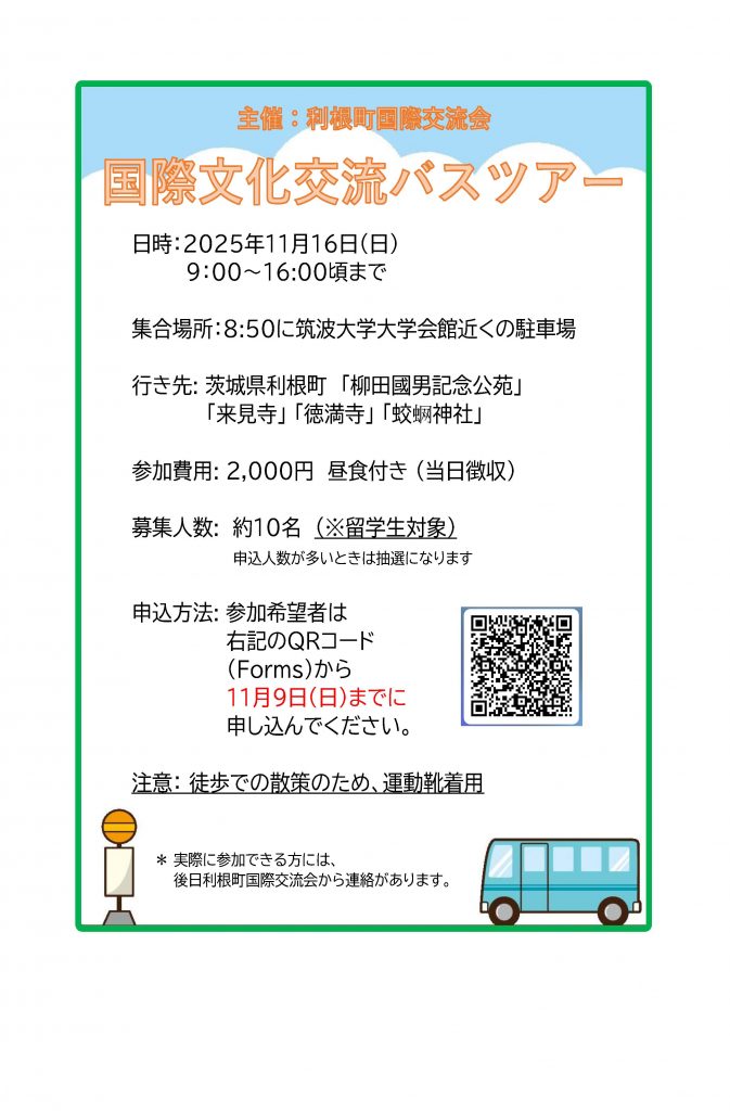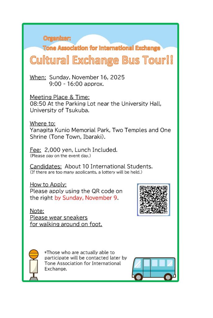 Tone Association for International Exchange are going to hold “Cultural Exchange Bus Tour!!”