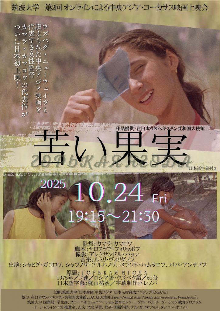 第2回目となる今回は、ウズベク・ニューウェイブの傑作として名高い、中央アジアでもっとも長く活躍した女性監督であるカマラ・カマロワの代表作『苦い果実』(1975)を日本初上映します。