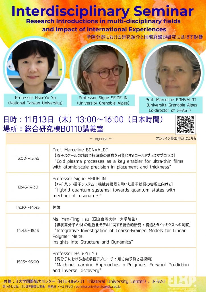 EU世界展開力「ナノ・量子・情報・生命分野融合の国際連携教育プログラム」では、分野融合セミナーInterdisciplinary Seminarを開催します。