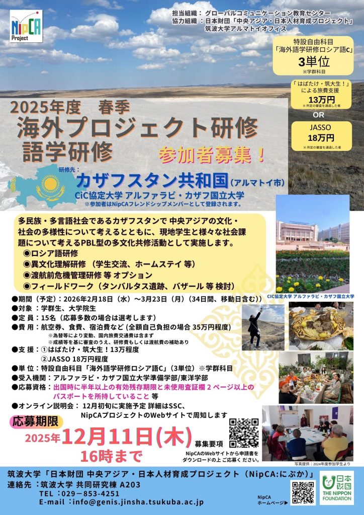 筑波大学「日本財団 中央アジア・日本人材育成プロジェクト(NipCA)」