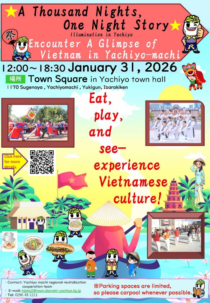 茨城県八千代町が、国際交流事業の一環としてベトナムの旧正月(テト)を体験できるイベントを初めて開催します。興味がある方は、是非参加してくだい。Yachiyo Town in Ibaraki Prefecture will hold its first event where participants can experience the Vietnamese Lunar New Year (Tet) as part of its international exchange program. If you are interested, please join us!