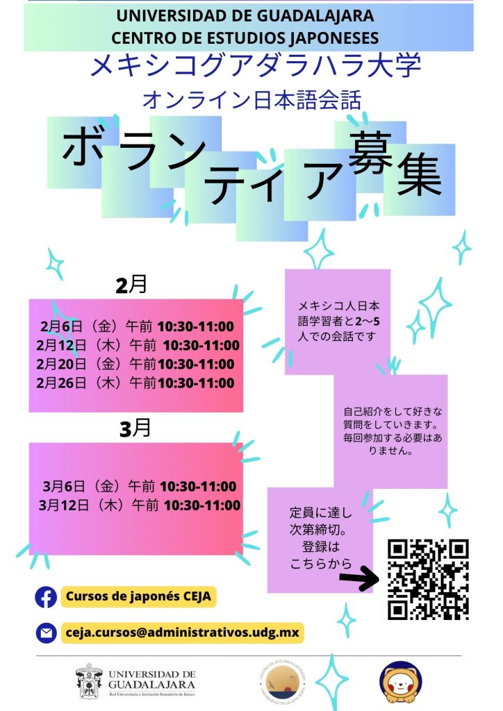 メキシコのグアダラハラ大学日本研究センターより、ボランティア募集のお知らせです。