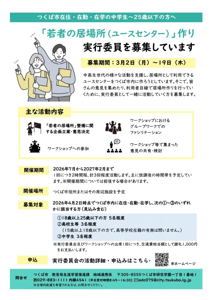 若者の居場所(ユースセンター)作り 実行委員を募集しています